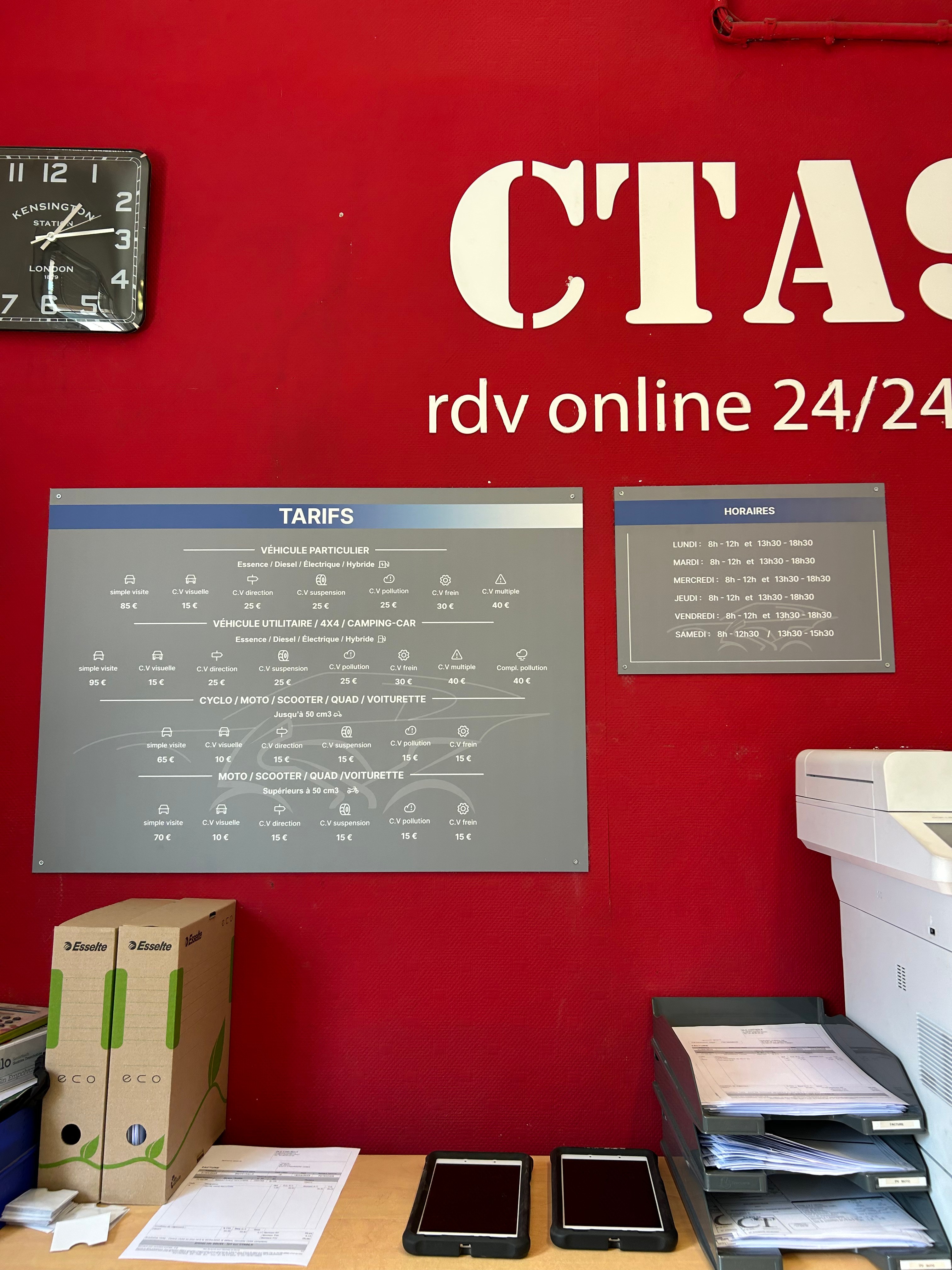 Création d’affiches publicitaires pour un centre de contrôle technique, dans le but de faciliter la lisibilité et l’apport de clients.